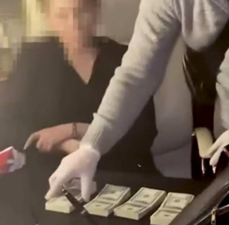 Сотрудники антикоррупционного ведомства выкладывают на стол перед Тимошенко пачки долларов.