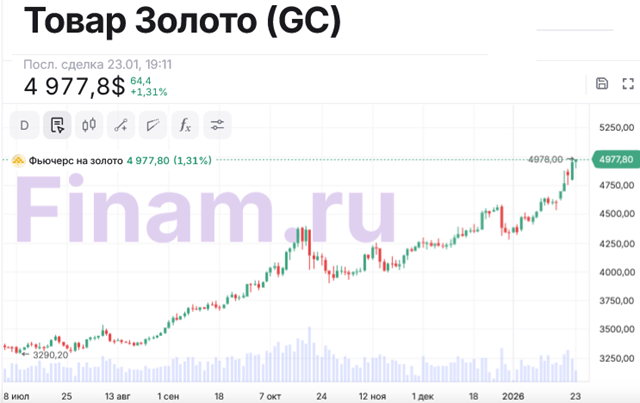 Прим. RF: Золото также продолжает дорожать. На 19:30 цена на него достигла 4977,8 долларов за унцию...На 1 декабря объем золота в ЗВР ЦБ России составлял 2326,5 тонны или 74,8 миллиона тройских унций. Соответственно, стоимость золотого запаса в ЗВР РФ на данный момент равняется примерно 372,3 Млрд.$, что на 35,6 Млрд долларов больше, чем было 1 января этого года, и на 176,4 Млрд. $ больше, чем было 1 января прошлого года. С момента же начала СВО непредвиденная прибыль России от подорожания золота составила уже почти 258,6 миллиардов долларов. Таким образом, доходы от роста цен на этот драгоценный металл оказались сопоставимы со стоимостью замороженных российских активов (244 миллиардов долларов в странах ЕС)...